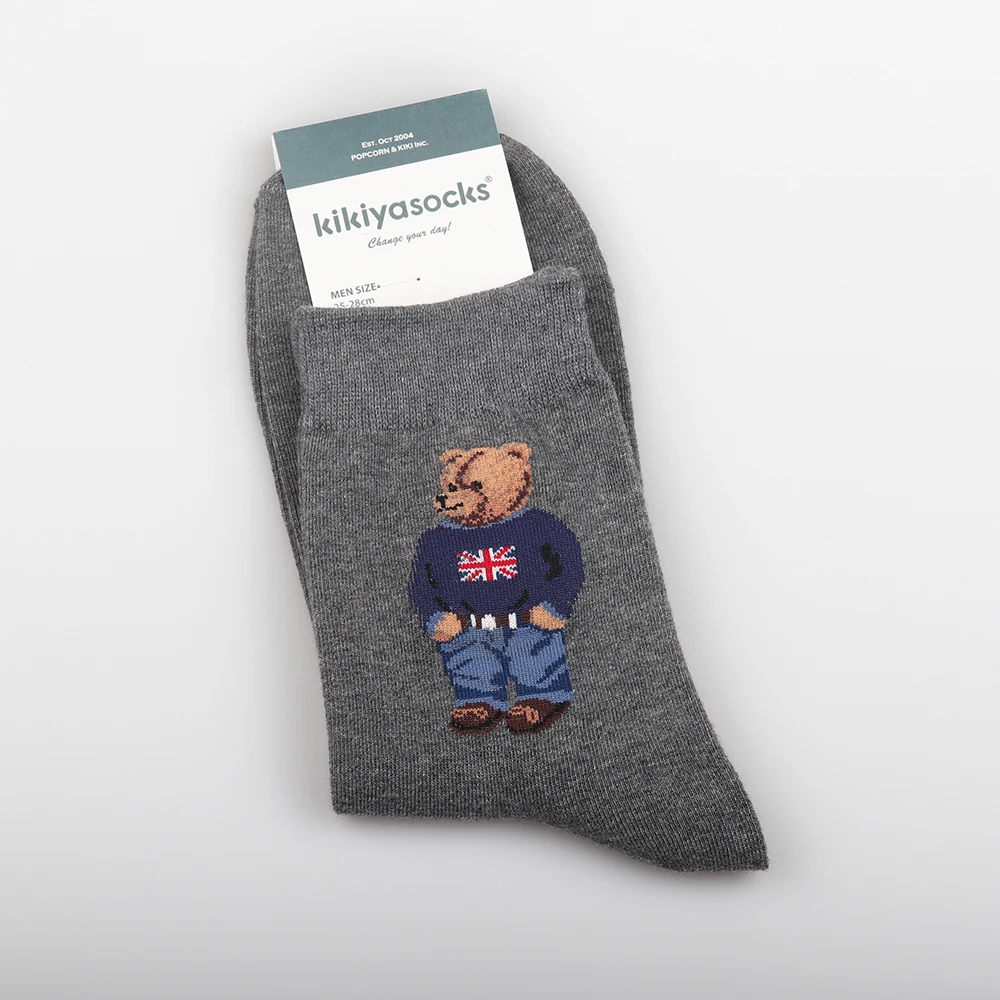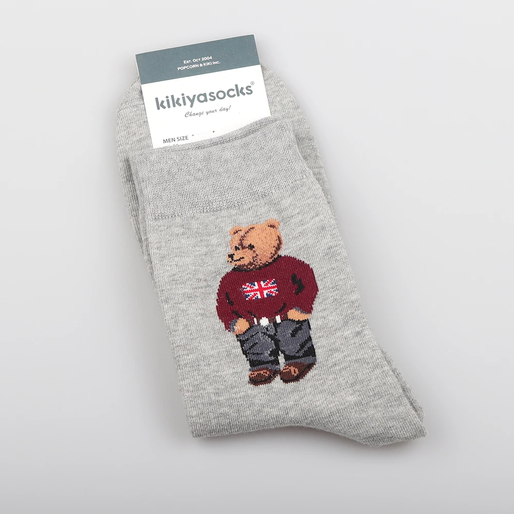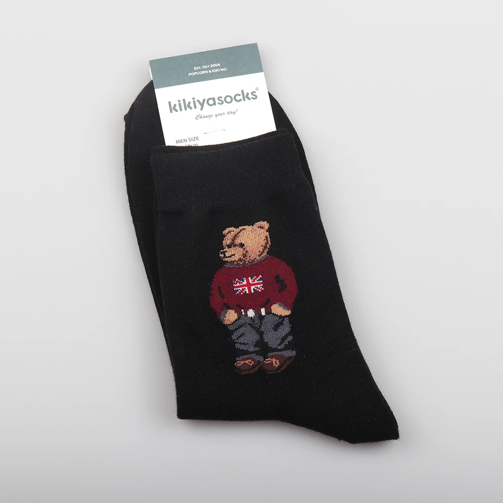 1 Pair Cartoon Gentleman Bear Men's Socks Cotton Harajuku Skateboard Socks Novelty Breathable Sox Christmas Gift Factory Direct