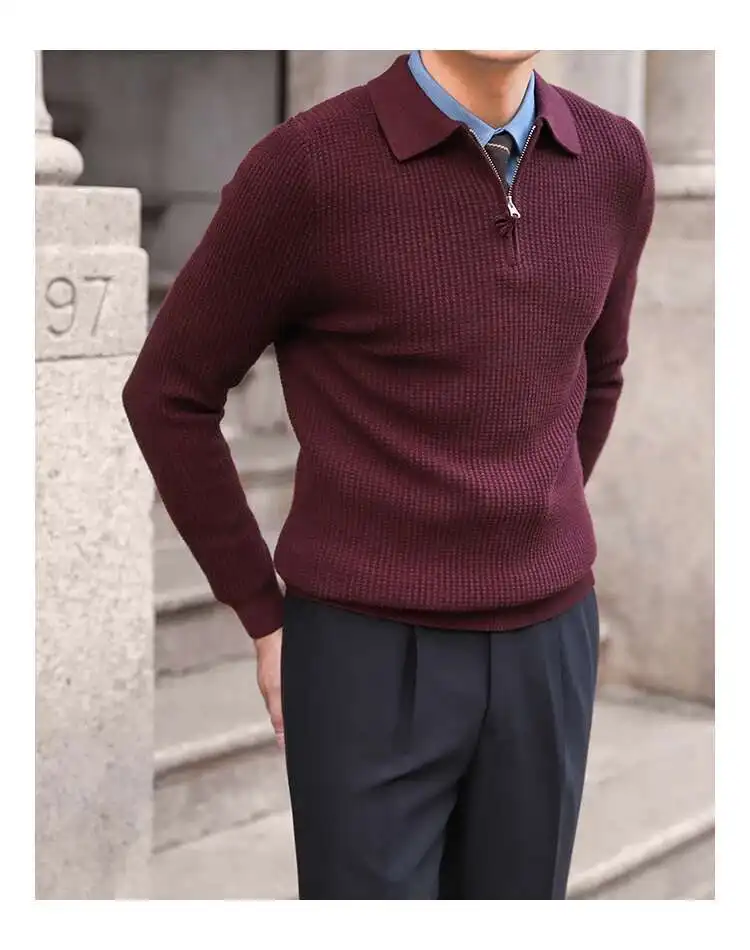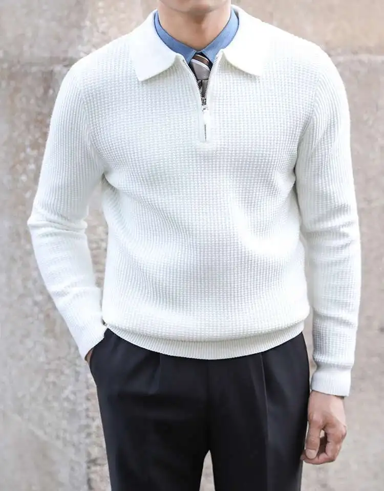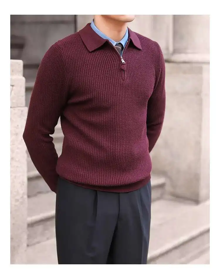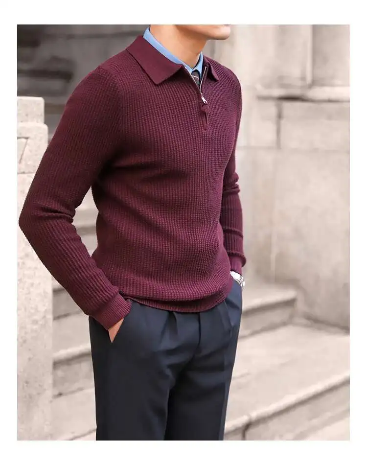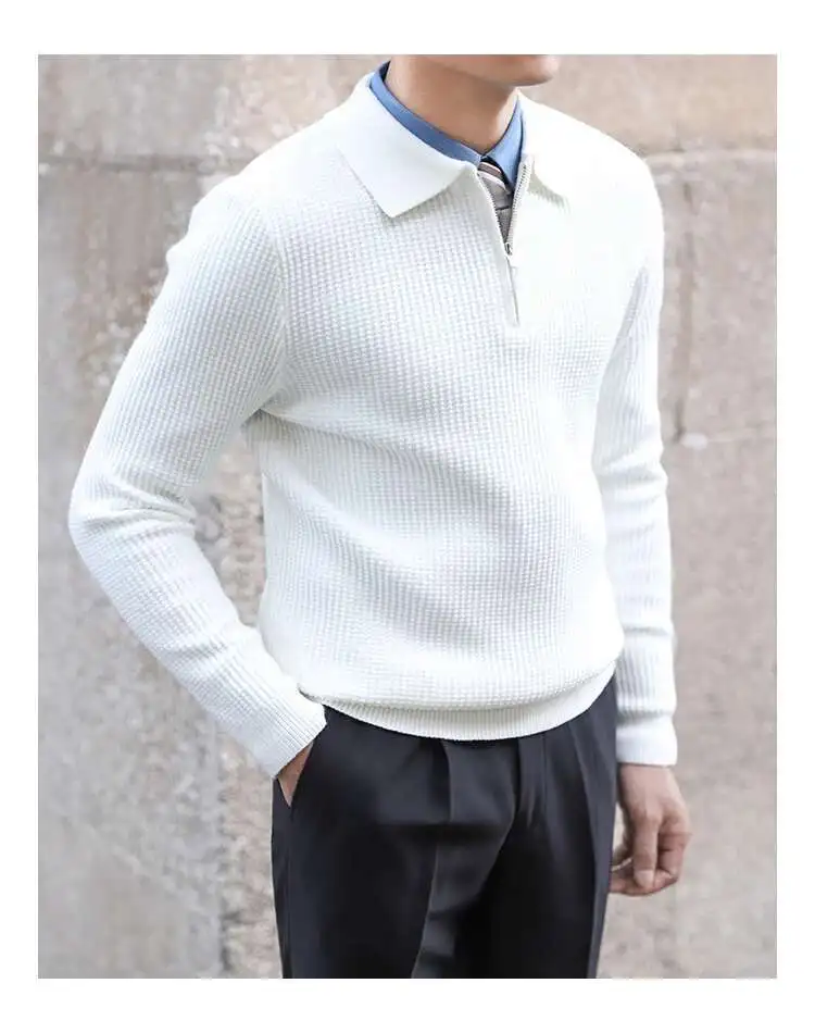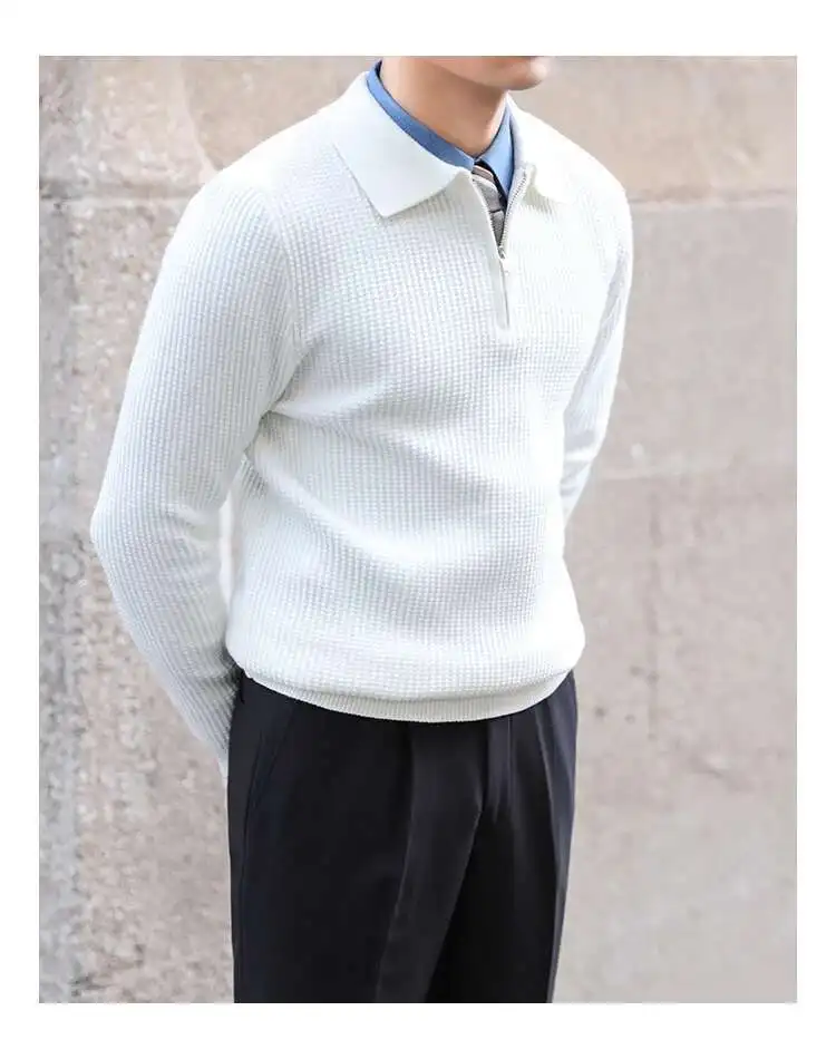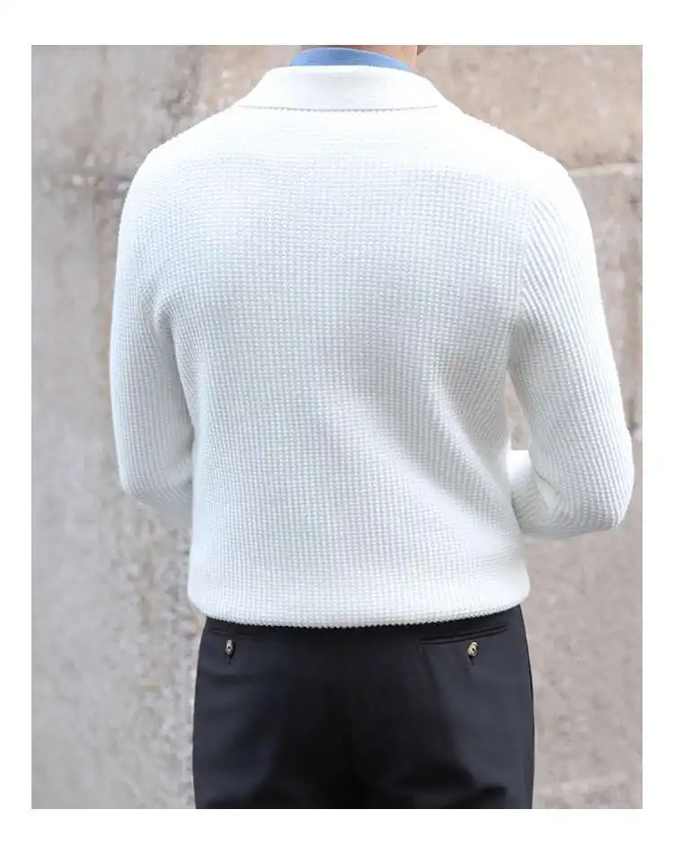 2024 Fall Pullover Personalized Slim Bottomed Lapel Men Streetwear Simple Retro Men Knit Sweater Casual Warm Pullover Sweater