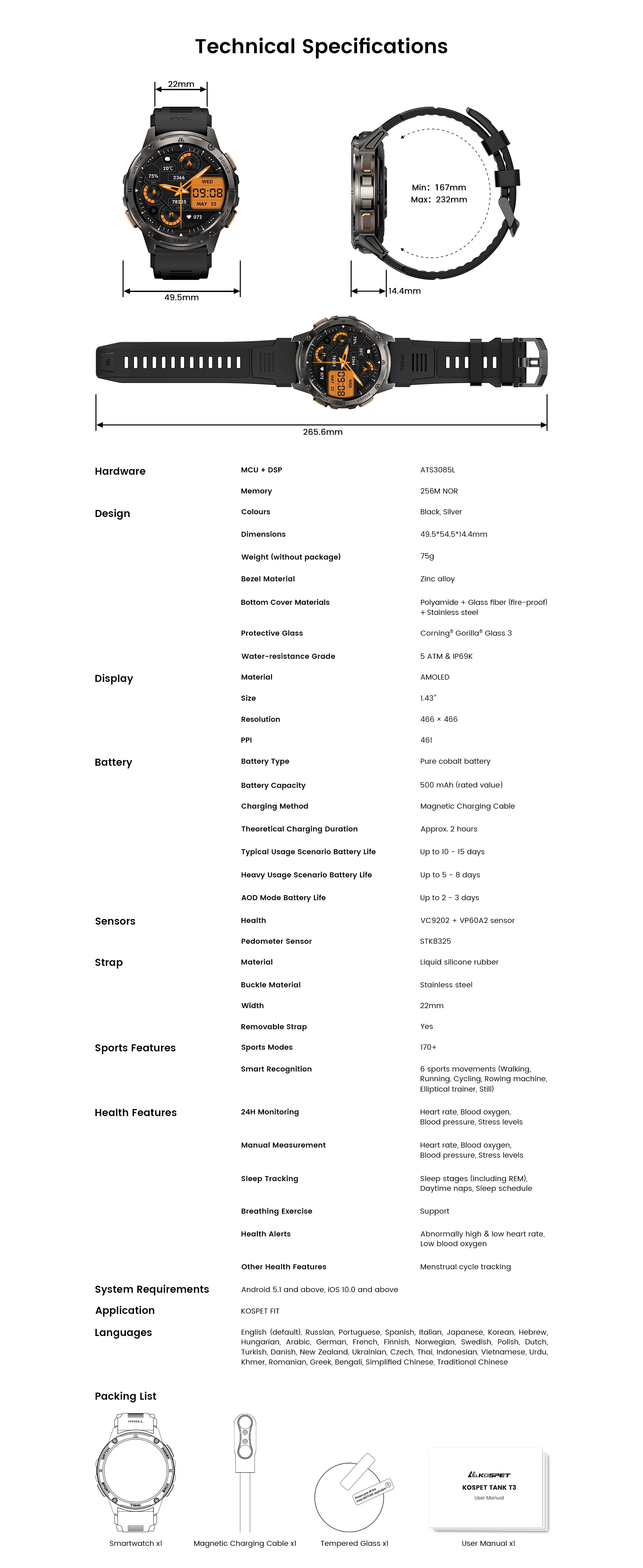 2025 NEW KOSPET TANK T3 Electronic Smart Watch Men