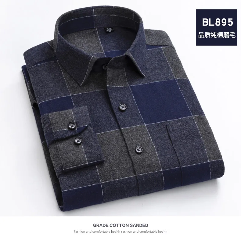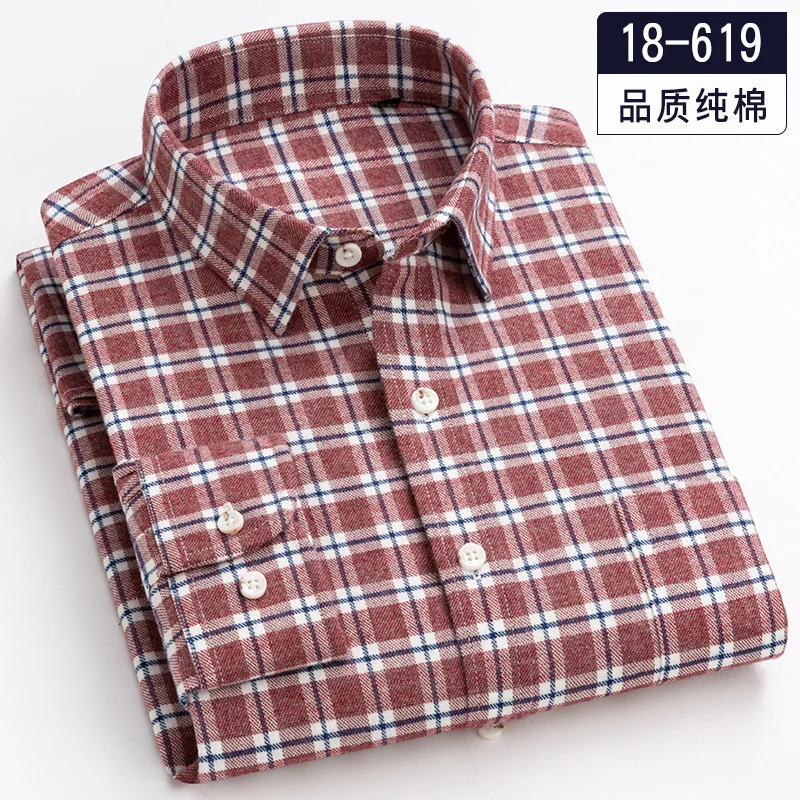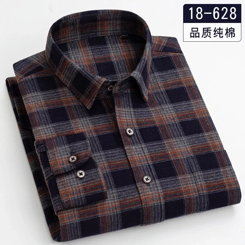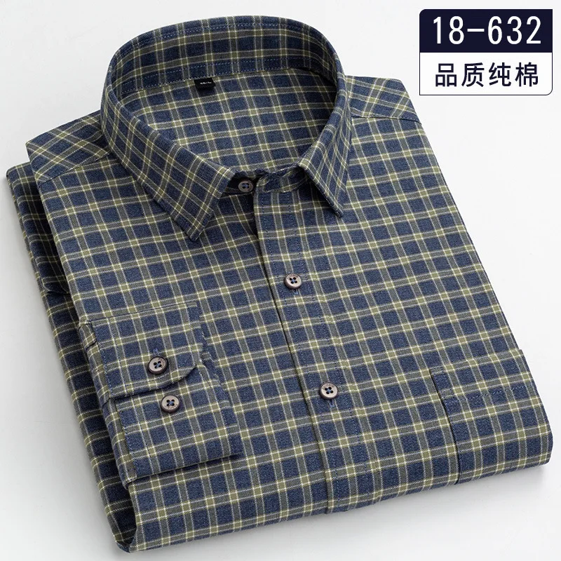 8XL 7XL100% Pure Cotton Lad Casual Slim Fit Shirt Men Longsleeve Shirt for Men Dad Loose Plaid Shirt Plus Size Button Up Shirt