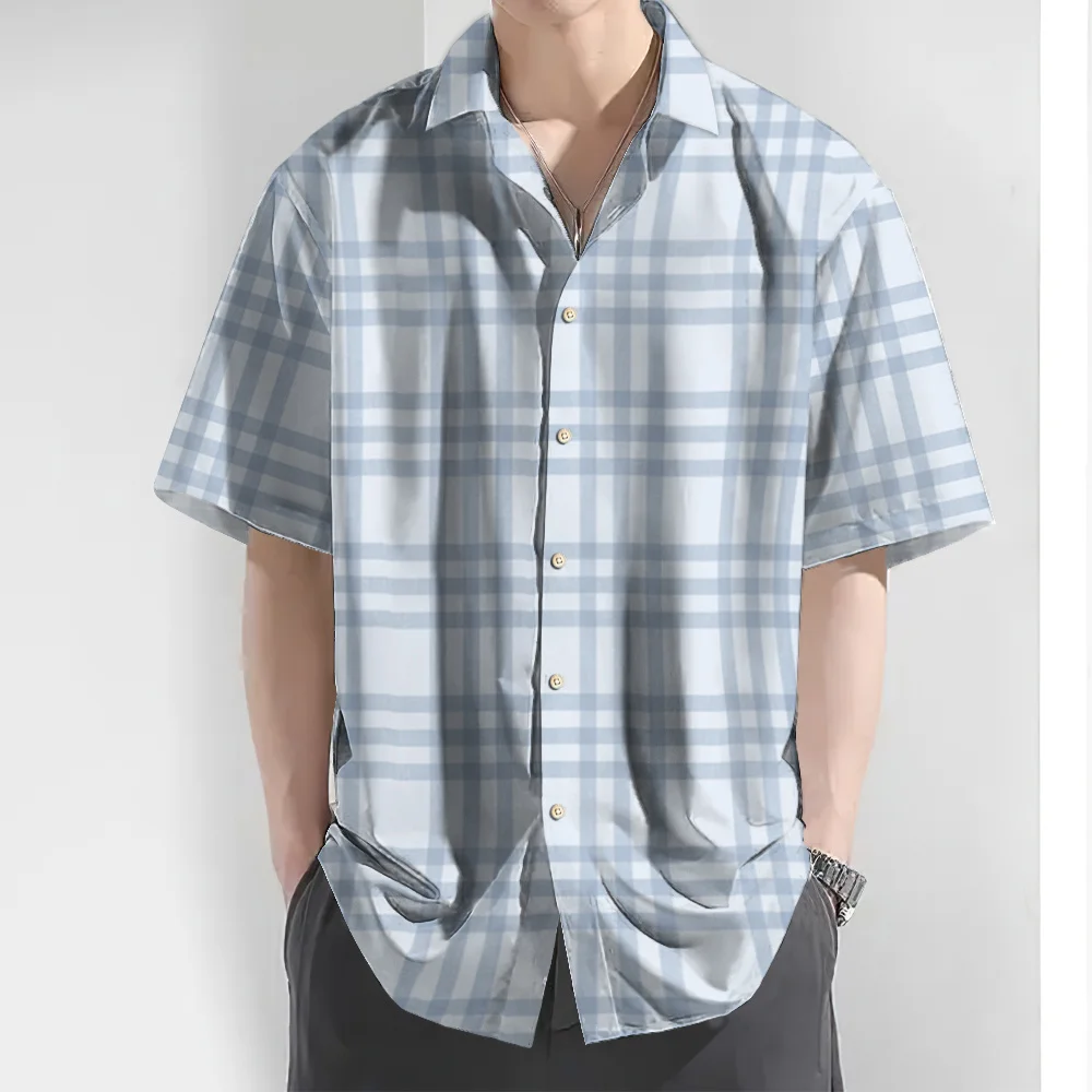 Casual Basic Shirt For Men Essential Leisure Short Sleeve Plaid Shirts Men Big Size Loose Fit Button Up Classic Plaid Men Shirt