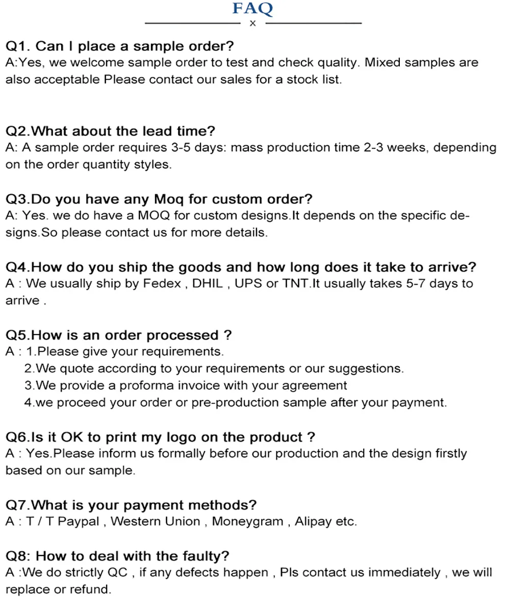 1. Customized products need 5-7 days production cycle. If you want to get your product faster, choose a faster logistics method.