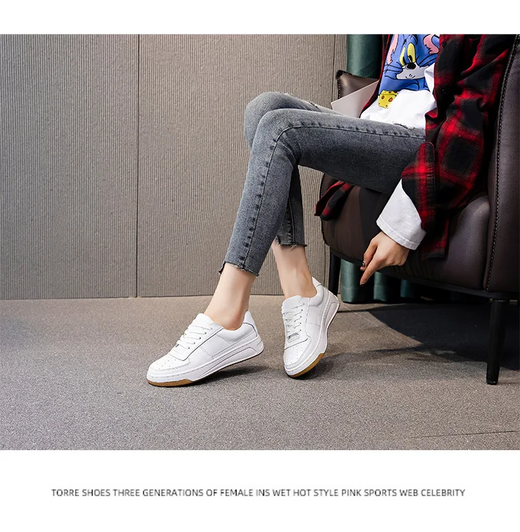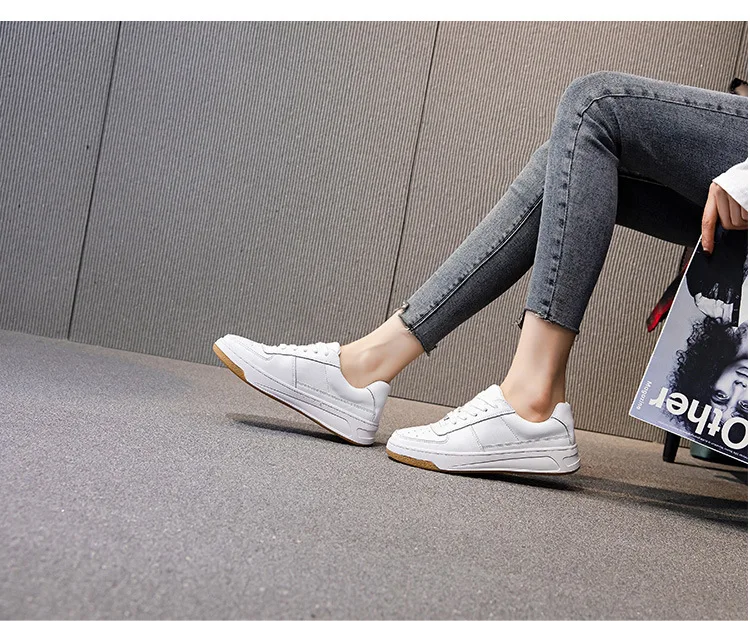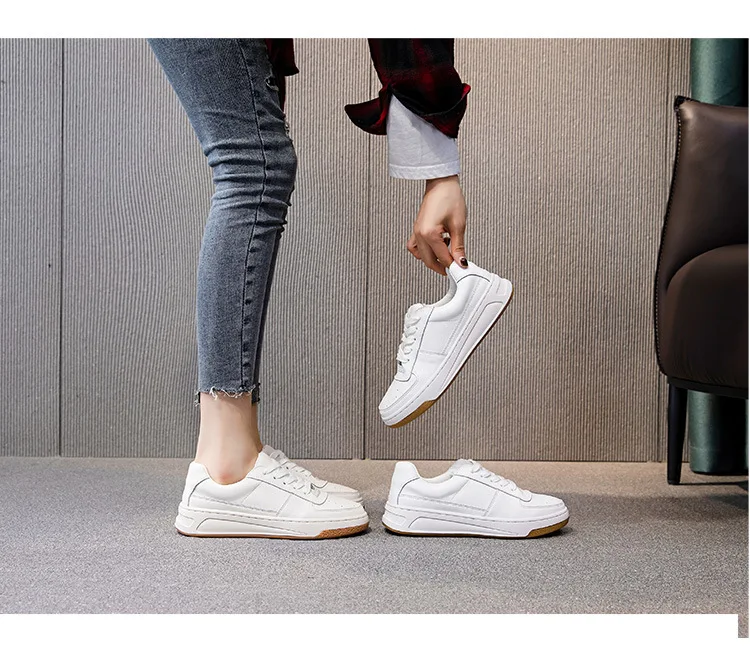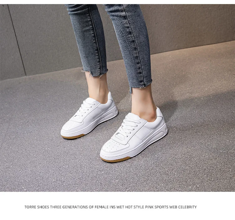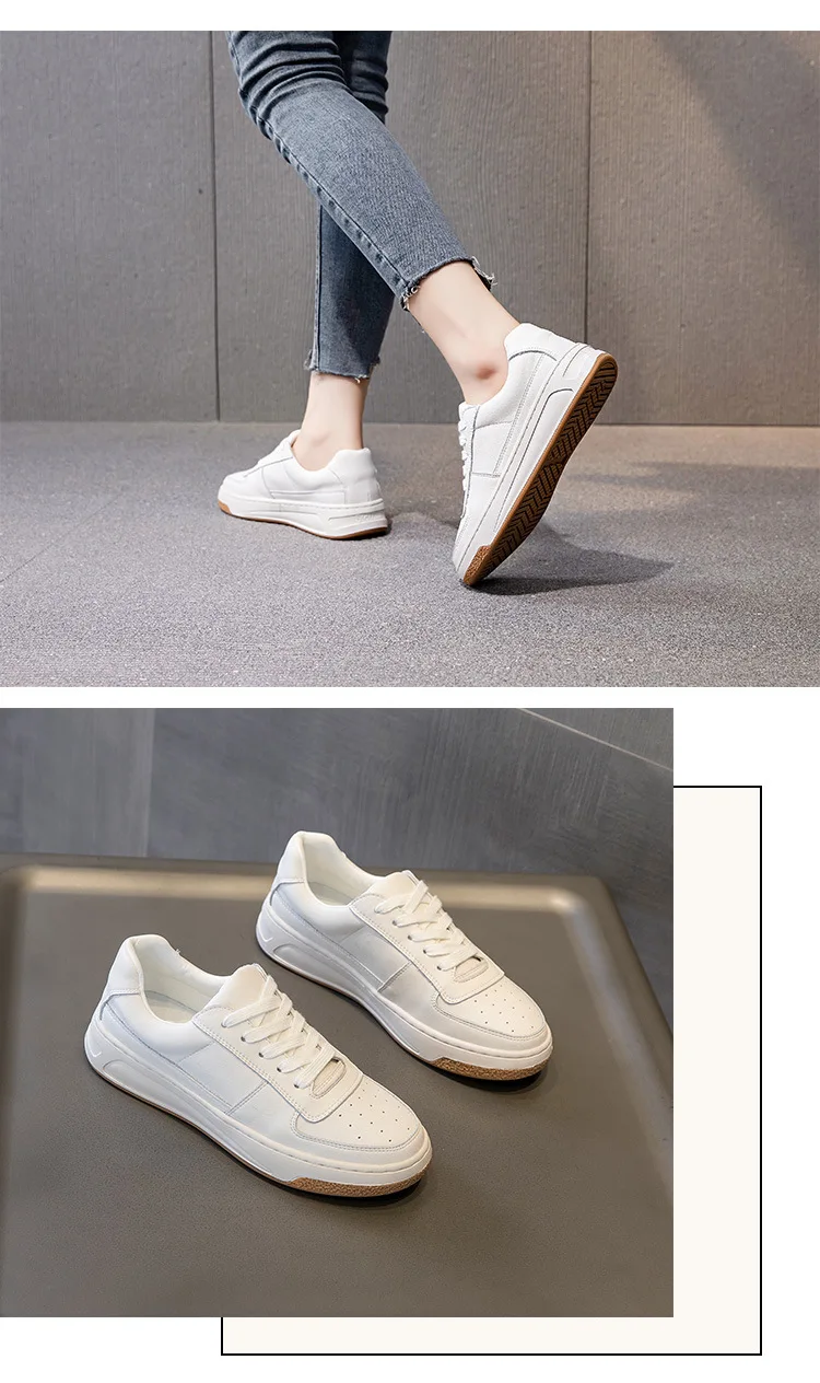CXJYWMJL Genuine Leather Women Autumn Sneakers Summer Casual Little White Shoes Ladies Thick Soled Vulcanized Shoe Court Sneaker