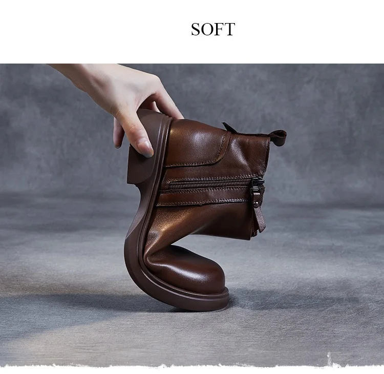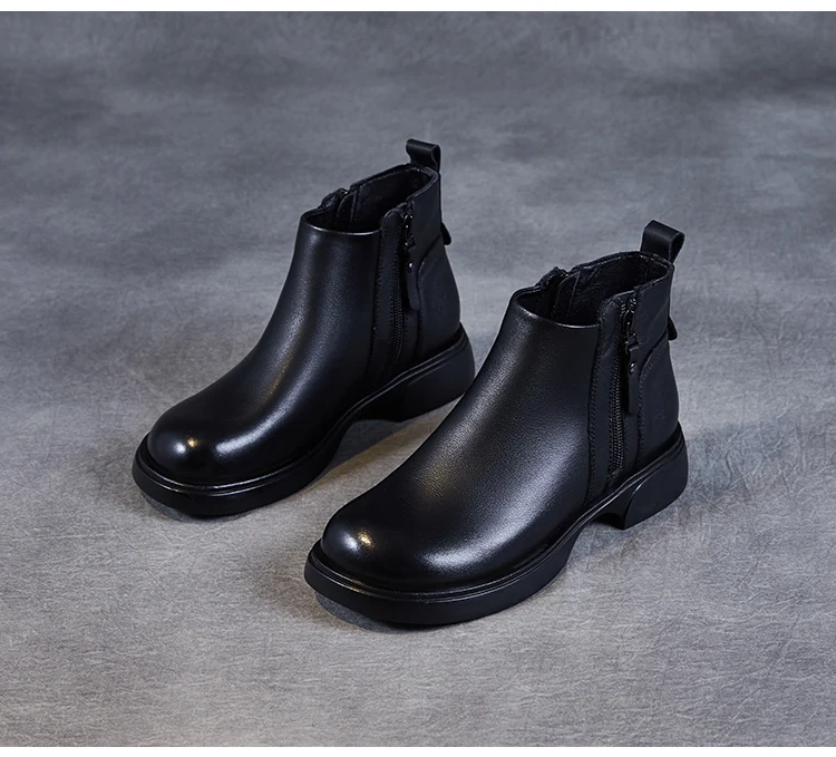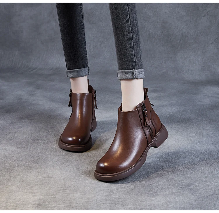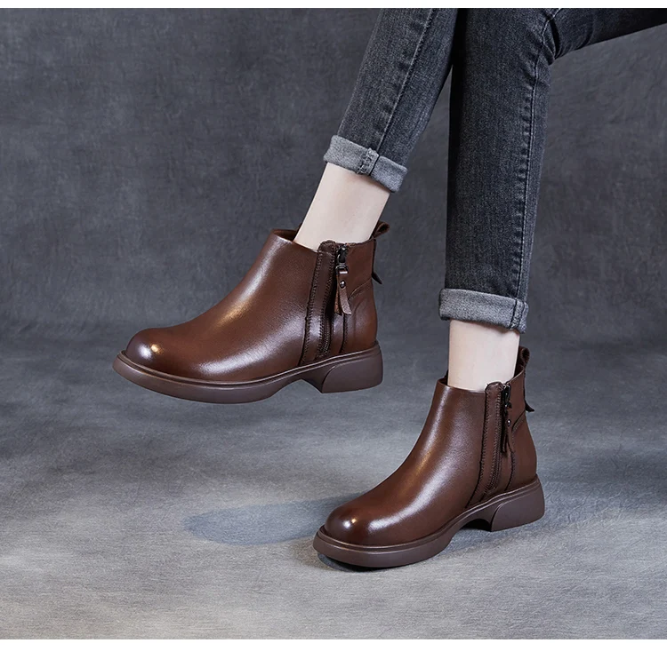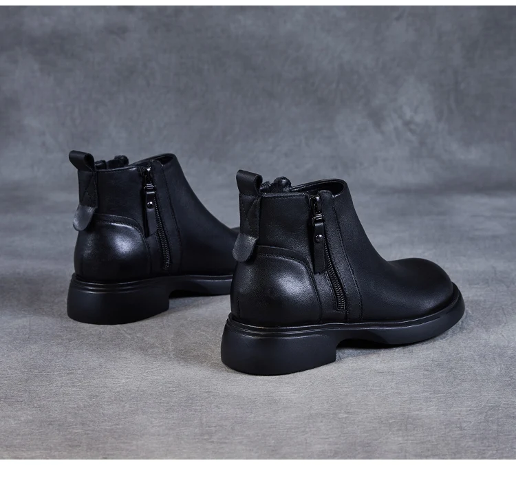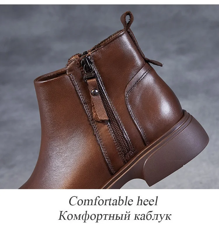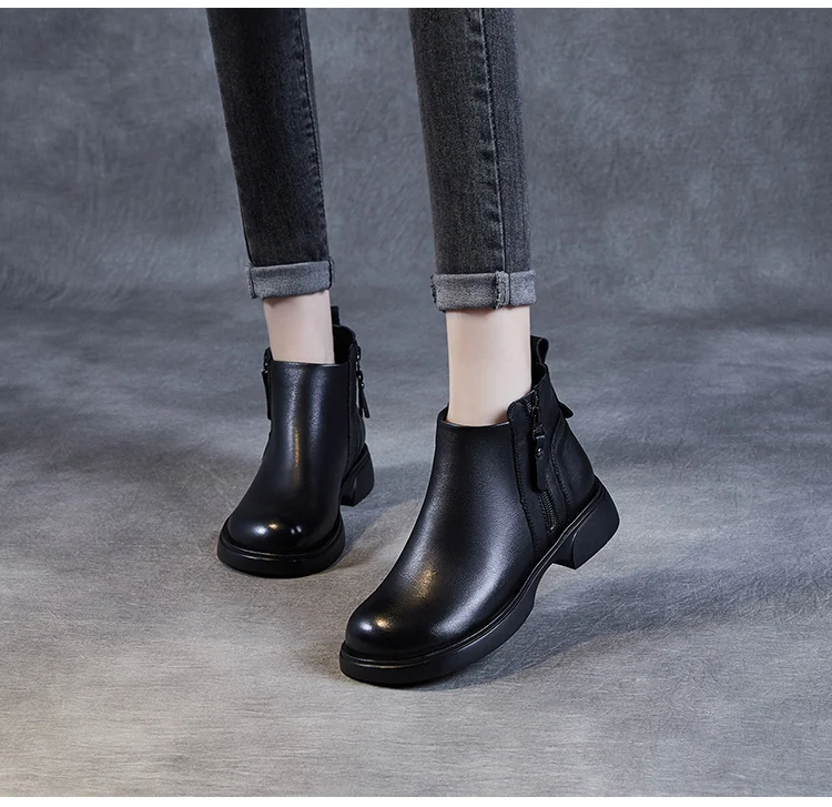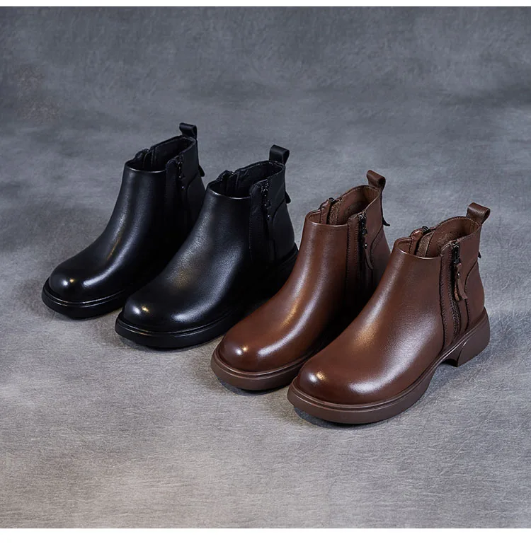 Fashion Women Ankle Boots Winter 100% Genuine Cow Leather Double Zipper Flat Heel Soft Sole Warm Casual Short boots
