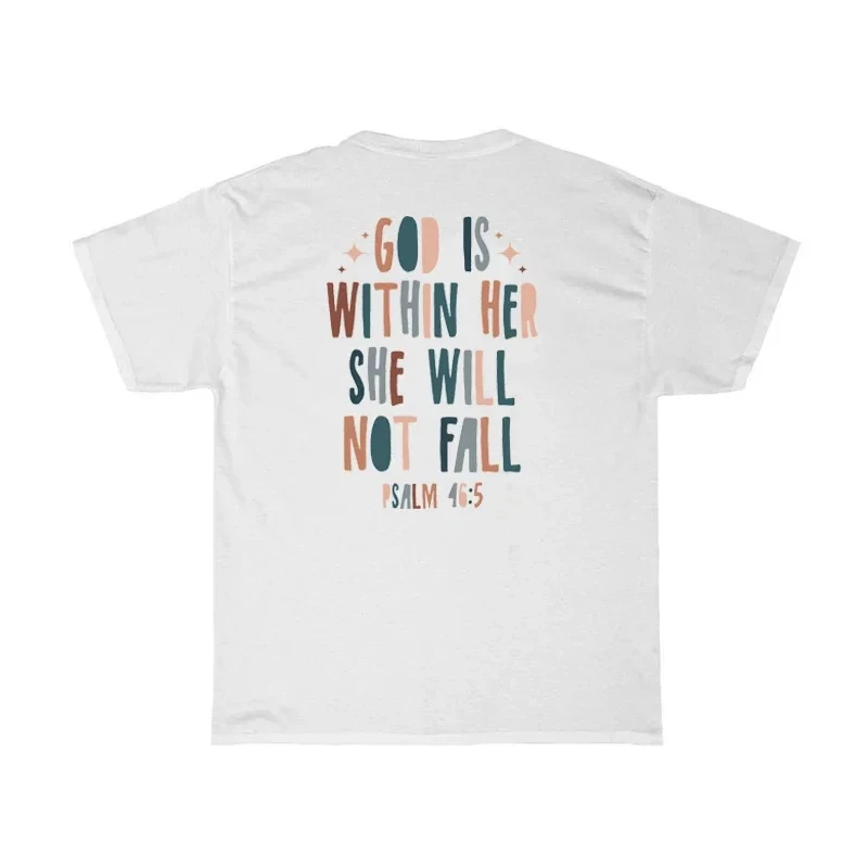 God Is Within Her Bible Verse Back Print T Shirt Women Vintage Boho Inspirational Faith Shirt Female Cute Cotton T-Shirt Tops